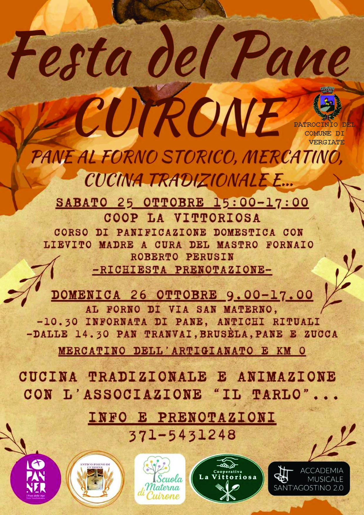 VERGIATE – Fine settimana di tradizione e convivialità a Cuirone di Vergiate, dove sabato 25 e domenica 26 ottobre torna la “Festa del Pane”, l’appuntamento che da quasi dieci anni riunisce la comunità attorno al forno storico di via San Materno, simbolo della vita contadina e della memoria del paese.