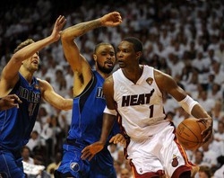 Wade è superlativo e chiude con 22 punti, 10 rimbalzi, 6 assist e 2 stoppate; LeBron James ne aggiunge 24 (4 su 5 da tre punti) mentre Bosh firma 19 punti. A Dallas non bastano i 27 punti di Nowitzki e i 16 con 10 rimbalzi di Shawn Marion. I Mavericks pagano lo scarso impatto della panchina, che ha prodotto solo 17 punti contro i 27 degli Heat. Giovedì notte è in programma gara 2, sempre a Miami.