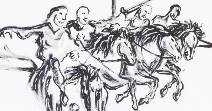 Sceso dal palcoscenico ma non dal suo ruolo di narratore, Chiodaroli traduce sulla tela lo stesso spirito ironico e riflessivo dei suoi monologhi. I suoi dipinti raccontano conflitti interiori e tensioni collettive, attraverso figure che si muovono in scenari fluidi e simbolici, dove cavalieri e cavalli evocano il bisogno profondo di libertà, senza scivolare mai nella violenza.