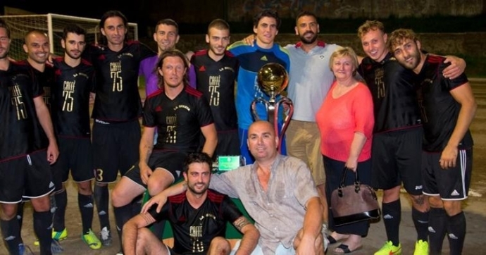 Al cardiopalma la finalissima tra e , con il pronostico dei presenti tutto a favore dei “cafeteros”. Ma la palla è rotonda e il maestro , capitano dei “camion” e specialista dei calci piazzati, sa come schiaffeggiarla: fischio d’inizio, bordata da centrocampo e 1-0 “red passion”. Gli “All blacks” accusano il colpo e al 3’ concede il “bis”, questa volta col pennello: destro a giro sopra la barriera e 2-0 per la Autotrasporti Rinaldi. La gara prende fuoco, clima perfetto per “il diavolo” : rimessa laterale tesa di Shala sul primo palo e tacco volante alla Crespo dell’ex Varese e Novara, che accorcia le distanze. Battaglia a intensità mostruosa: e fanno a spallate da una parte, dall’altra Bertani si ferma più volte su pazzesco centrale difensivo che esalta i presenti con tecnica difensiva e grande coraggio. Nel secondo tempo il Caffé 75 alza la pressione, con il numero 1 dei rossi che si supera in più di un’occasione. Il pari è nell’aria e arriva a meno di 5’ dalla fine: scende a destra e spara un missile in diagonale su cui neanche Vecchietti può nulla. Si va ai supplementari, equilibrati come tutta la gara. L’impressione è che solo un episodio possa rompere l’equilibrio. E così è: e murano tre volte , la palla finisce a Moia il cui tiro sporco diventa un assist per che, gelido, mette a rete il 3-2 finale e fa esplodere la gioia del .
