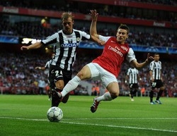 La partita regala tante emozioni, con un’Udinese fin troppo coperta e un Arsenal con parecchie seconde linee. Al 23′ la prima palla gol è per Di Natale che colpisce il palo. Poi, dopo un doppio miracolo di Handanovic su Walcott e Van Persie, i friulani passano con il capitano Di Natale al 39′, che su cross perfetto di Pinzi, di testa batte Szczesny con un colpo da biliardo che fa esplodere il Friuli.