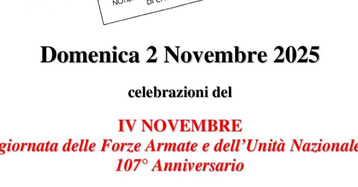 CASTIGLIONE OLONA – Quest’anno, in occasione del 107° Anniversario della Giornata delle Forze Armate e dell’Unità Nazionale, le celebrazioni del IV NOVEMBRE a Castiglione Olona si svolgeranno domenica 2 novembre 2025.