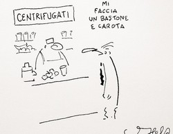 Ho un rapporto stretto con la satira e lo humor italiani, francesi ed americani di allora, perché sono state le mie letture da bambino. Pensando al Male mi vengono in mente le famose finte prime pagine dei grandi quotidiani con le finte notizie (“Tognazzi capo delle BR”), e questo pensiero: oggi, una percentuale preoccupante di persone crede alle cosiddette ’bufale’, leggendole talvolta proprio dalle pagine di quegli stessi grandi quotidiani. Non ho la più pallida idea di cosa ciò significhi, ma qualcosa vorrà dire.