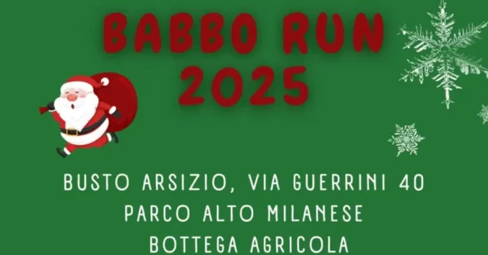 L’Asd Free Runners Team, con il patrocinio del Parco Alto Milanese e del Comune, rilancia la Babbo Run. La manifestazione si svolge con partenza e arrivo al consorzio del parco, in via Guerrini, unendo sport e spirito natalizio.