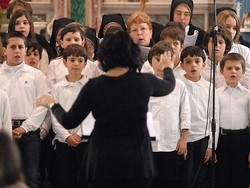 Il coro degli alunni di quinta elementare e delle medie dell’istituto Figlie di Betlem di Gallarate si è esibito ieri pomeriggio per 50 minuti all’Aloisianum, diventato, da qualche anno, la casa di quello che fu l’arcivescovo di Milano. Insieme a loro hanno cantato anche i genitori dei ragazzi, altri bambini che frequentano le scuole milanesi dell’istituto e le suore. Le canzoni, intervallate da