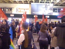 Filt Cgil, Fit Cisl, Uiltrasporti e Cub non ci stanno. La protesta dei lavoratori di Globe Ground andrà avanti ad oltranza. Dopo la manifestazione di mercoledì, ieri la seconda dimostrazione per una preoccupazione forte, allarmante che non farà certamente trascorrere un Natale sereno a più di cento famiglie dei dintorni di Malpensa. Nessuno ha risposto alle parole provocatorie del passeggero arrabbiato. Solo qualche slogan: «Se Lufthansa vuol partire in orario deve avere il suo personale».
