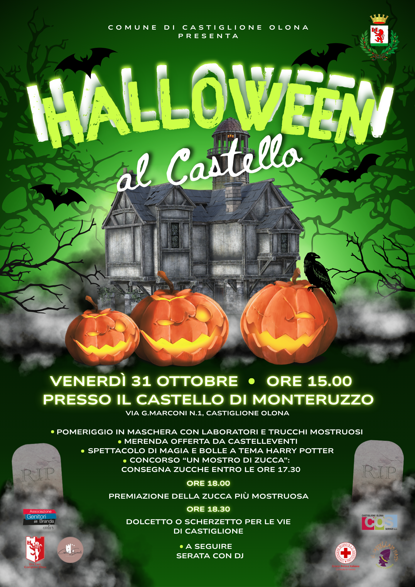 L’appuntamento è per oggi venerdì 31 ottobre al Castello di Monteruzzo (Via G. Marconi, 1) dove, a partire dalle ore 15.00, negli spazi dello storico edificio castiglionese sarà possibile trascorrere una spaventosa giornata all’insegna del divertimento.