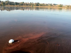 Il lago rosso spaventa Gavirate «Niente bagno né pesce in tavola»