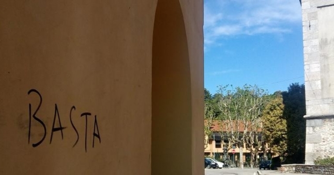 Con le scritte non si è vista, almeno sin ora, la stessa opposizione. Le scritte sono lì da settimane ormai: da via Bolchini scendendo in piazza Ferrucci, di fronte al campanile, sui muri del portico ormai privo di attività commerciali.