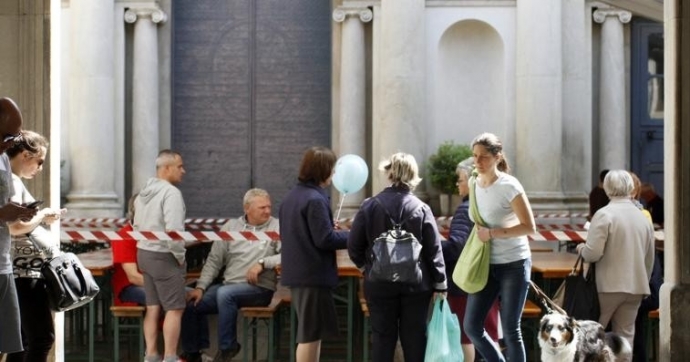 La solidarietà siede a tavola in piazza San Vittore
