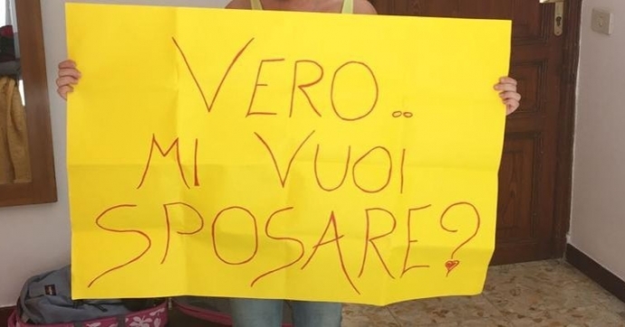 Veronica legge la proposta, vola tra le braccia di Denis, commossa, emozionata. Vasco canta “Come non è vero, sei te?”, intorno ai due ragazzi esplode la festa. Denis urla: «Però non mi ha ancora risposto».