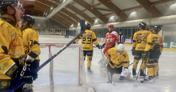 La squadra di Juhani Matikainen gioca una partita praticamente perfetta per oltre due tempi e mezzo: solidità difensiva, ripartenze letali e grande concretezza offensiva permettono ai gialloneri di scappare fino al 5-1 prima della reazione finale degli agordini. Nel finale è Filippo Matonti a respingere l’assalto disperato dei padroni di casa e a mettere il sigillo su una vittoria pesantissima.