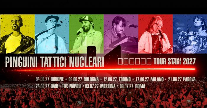 MILANO – Ci sarà anche Milano tra le città che ospiteranno il nuovo tour negli stadi dei Pinguini Tattici Nucleari nell’estate 2027. La band tornerà a esibirsi nei principali impianti italiani con una nuova tournée live, annunciata dopo un video spoiler diffuso sui social nelle scorse ore, in cui il gruppo ha ironizzato sull’attesa dei fan.