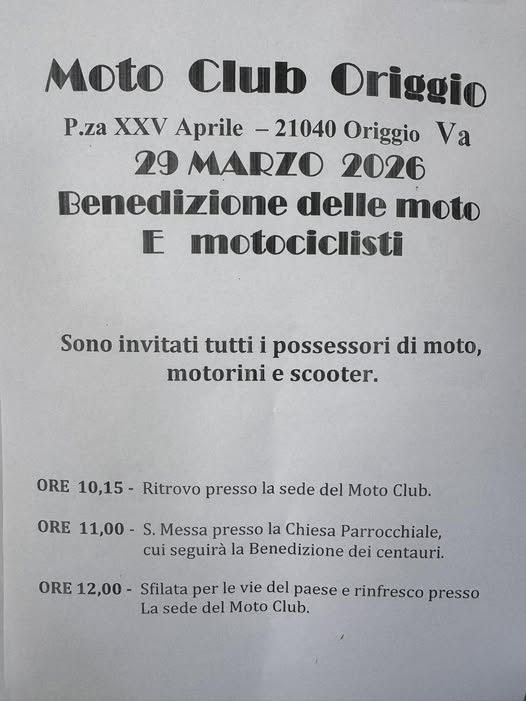 A Origgio torna uno degli eventi più attesi dagli amanti delle due ruote. Domenica 29 marzo il Moto Club Origgio organizza la tradizionale benedizione delle moto e dei motociclisti, un appuntamento che unisce passione, spirito di comunità e momento religioso.
