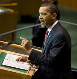 New York, 23 set. (Apcom) – Il presidente americano Barack Obama, nel suo atteso e applauditissimo primo intervento di fronte all’Assemblea Generale delle Nazioni Unite, ha promesso “una nuova era” per la comunità internazionale e ha riconosciuto il ruolo centrale dell’Onu, messo in discussione dal suo precedessore George W. Bush, per affrontare le grandi sfide planetarie. Ma Obama ha anche messo in guardia i molti capi di Stato e di governo che lo hanno ascoltato al Palazzo di Vetro: “Gli Stati Uniti non possono risolvere da soli i problemi del mondo”, ha continuato: “E’ giunto il momento che tutti si prendano la loro parte di responsabilità”.