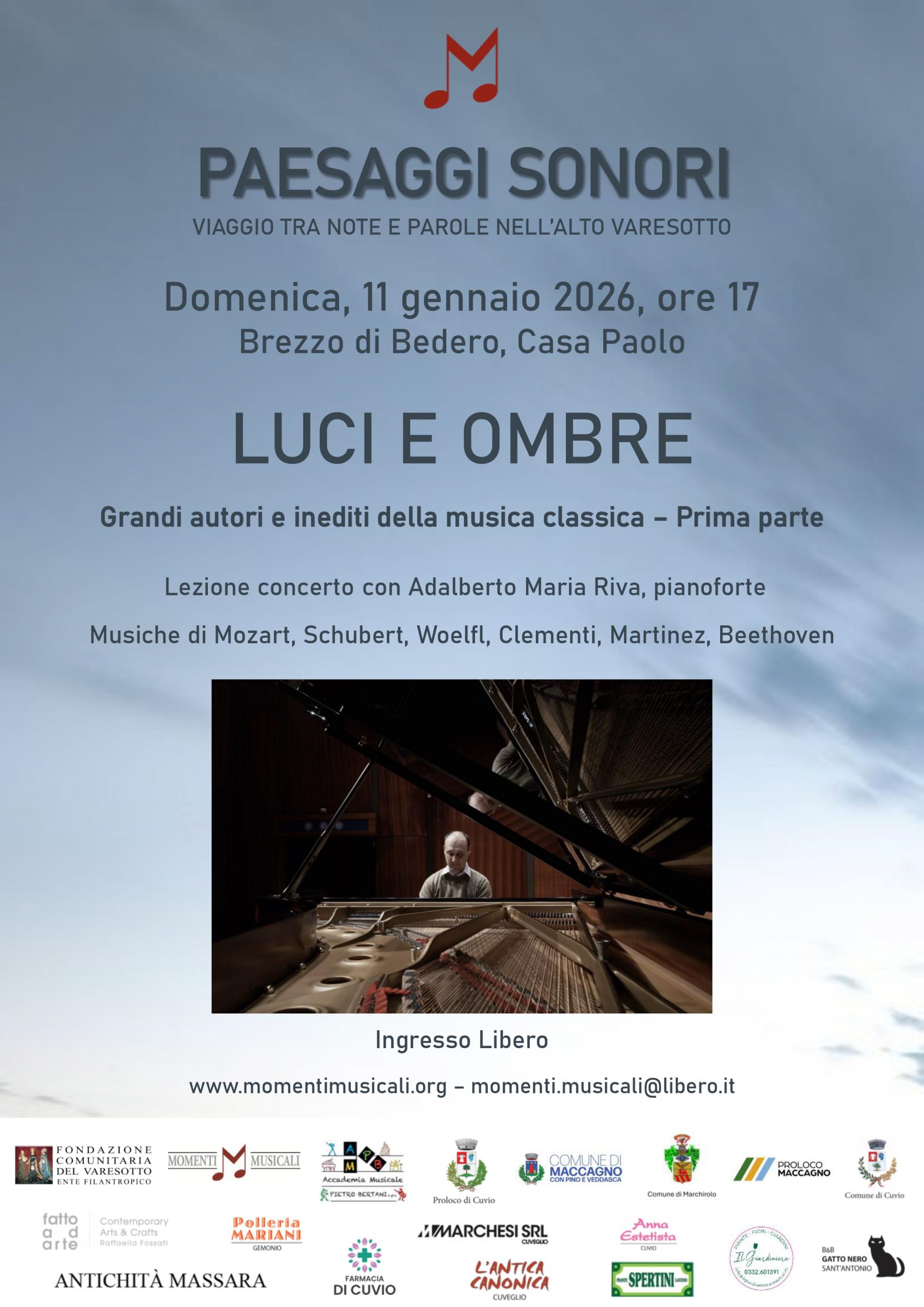 “Luci e Ombre”, domenica 11 gennaio alle ore 17 presso Casa Paolo di Brezzo di Bedero. Una lezione concerto tenuta dal maestro Adalberto Maria Riva.