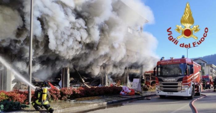 LAVENO MOMBELLO – Un sabato drammatico in via XXV Aprile, dove poco dopo mezzogiorno un violento incendio ha distrutto un’attività commerciale al piano terra di uno stabile, costringendo decine di famiglie a scappare in strada. In pochi minuti una colonna di fumo grigio si è alzata sopra il centro di Laveno, visibile anche a grande distanza.