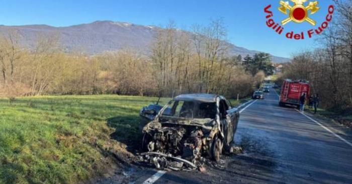 Le cause del rogo non sono ancora state chiarite, ma l’auto coinvolta era dotata di un tradizionale motore termico. L’incendio ha causato rallentamenti lungo la provinciale e ha richiesto l’intervento anche delle forze dell’ordine, impegnate nella gestione della viabilità e nei primi accertamenti. Nessun altro mezzo è rimasto coinvolto.