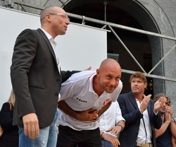 grida che arrivano anche da corso Matteotti, dove gli ultrà si sono messi in marcia cantando a squarcia gola: gli irriducibili arrivano fin sotto il palco, dove sventolano lo striscione «Laurenza, le tue idee i nostri sogni». Il patron riceve anche una sciarpa biancorossa mentre gli ultrà sputano veleno sul predecessore: Antonio Rosati che, dopo aver aperto il ciclo più vincente degli ultimi decenni, ha scelto di passare al Genoa, a caccia di nuovi stimoli.