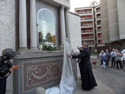 SARONNO Una breve ma solenne cerimonia, svoltasi ieri pomeriggio alle 18 ha sancito l’inaugurazione dell’edicola dell’Immacolata situata tra via Legnani e via Campi a Saronno. La statua è stata scoperta e restituita alla città in tutto il suo splendore, dopo un attento restauro. L’edicola, soprattutto il delicato mosaico dorato che circonda la scultura, era stata seriamente danneggiata dal cattivo tempo e dagli agenti atmosferici tanto che l’istituto Padre Monti ha avviato una colletta per il restauro. Grazie alla generosità dei fedeli e dei residenti della zona é stata raggiunta la