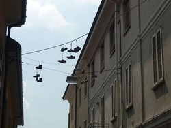 SARONNO Il fenomeno dilaga. In meno di un anno sono diventate una decina le paia di scarpe appese al fili della luce in via Cavour: non è ancora stato chiarito il significato di questa pratica ma quello che è certo è che il trend che ha conquistato il mondo, passando da Brooklyn a Madrid attraverso Vancouver, sta crescendo notevolmente anche nella città degli amaretti. Tutto è iniziato nell’ottobre dell’anno scorso quando sui cavi della tensione di via Cavour, in pieno centro storico,