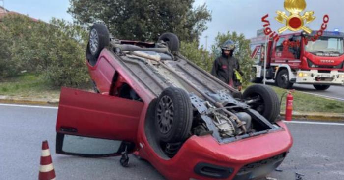 Un’auto si ribalta dopo lo scontro