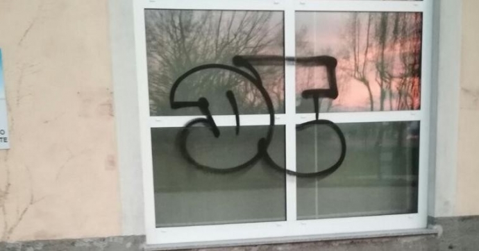 Sono comparse due “tag” sulla parete esterna del Lido della Schiranna.
