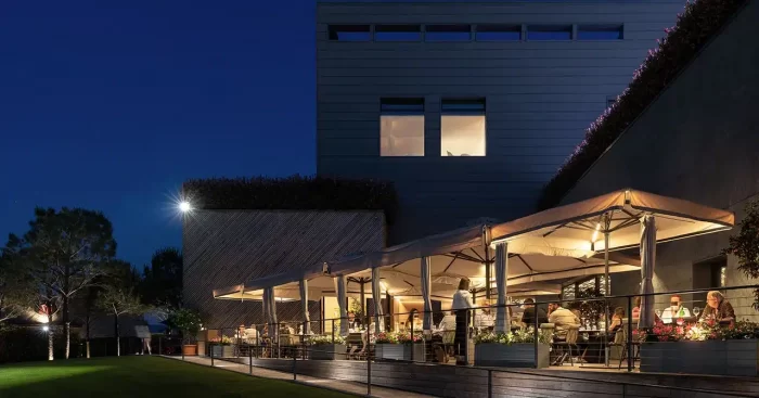 La parte gastronomica è gestita dal Ristorante Olio, che sulla sua pagina web si qualifica come “ristorante di pesce con orto” e che proprio di recente è entrato a far parte della prestigiosa Guida MICHELIN 2026, conquistando la sua prima stella.