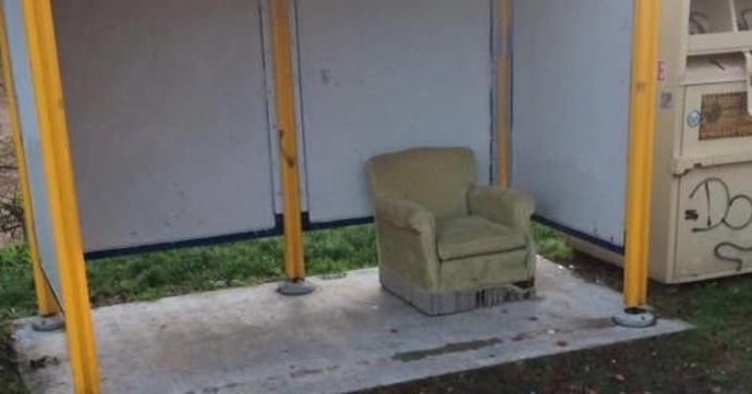 Una poltrona da salotto al capolinea dell’autobus. É comparsa alla fine di via 7 Termini, a San Fermo, da dove parte la linea H diretta alla scuola europea. L’autogestione del comfort degli utenti del mezzo pubblico però è durata poche ore, perché già ieri pomeriggio la comoda seduta non era più lì.