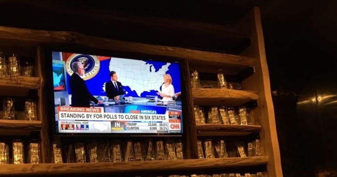 Il mio osservatorio per la parte iniziale della grande serata è il Silver Harbor, un birrificio ristorante che, come mi assicura Mike uno dei proprietari, verrà convertito da Sports Bar a Election bar per l’occasione. In effetti due dei tre schermi panoramici sono sintonizzati su CNN ed ABC, mentre il terzo trasmette una partita di Football perché il Football è pur sempre il Football. Dopo un lungo conto alla rovescia, alle 18.30 arriva la prima chiusura dei seggi. Lo stato conservatore del Kentucky trasmette i primi numeri e…Trump è in grande vantaggio. Un cliente che mi farà compagnia in tutta la serata, Clintoniano, mi rassicura dicendo che tipicamente i seggi rurali ultra conservatori sono quelli che chiudono prima e che pertanto si devono attendere le grandi città, presumibilmente più cosmopolite (sempre in termini relativi parlando del Kentucky), per capire il vero andamento. Registro questa nota con grande serietà, non sapendo che sarà la prima di una lunga serie di spiegazioni che mi darà mano a mano che la realtà prenderà una piega completamente diversa. Quando CNN chiama la sua prima “Allerta importante” alle 19 l’attenzione si sposta sulla Florida, stato in bilico per eccellenza.”Se Clinton si aggiudicasse lo stato, Trump dovrebbe praticamente vincere in qualsiasi altro stato per rimanere a galla”. Il “Mood” è quello di una potenziale serata breve: Clinton prende la Florida e andiamo tutti a casa sereni.Proprio così. Alle 19.25 i primi dati. Grandi ribaltamenti di fronte nelle ore successive, ma alle 23.30 cade la Florida e subito dopo l’Ohio. A questo punto il sentimento è totalmente diverso. Gli sguardi tradiscono tensione e “Questo non l’avevamo previsto” comincia ad essere la frase più ricorrente. Mentre la notte avanza, la mappa degli USA diventa totalmente rossa, ovvero repubblicana. Si sente l’anima repubblicana risvegliarsi nel locale, anche il livello di rumore sta salendo. Alla chiusura del bar, la situazione appare già molto compromessa.