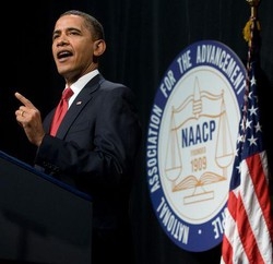 Il presidente ha lanciato un monito: il secondo secolo della NAACP deve vedere una nuova sfida, non più la lotta contro i pregiudizi ma quella contro le ineguaglianze strutturali del sistema. I giovani neri oggi devono aspirare ad essere scienziati, ingegneri, medici, e non solo giocatori di basket o musicisti di rap. Devono aspirare a diventare giudice della Corte Suprema. Voglio che aspirino a diventare presidente degli Stati Uniti”, ha concluso fra applausi scroscianti.