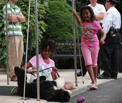 Oggi infatti il cane del presidente americano, il “cao de agua” Bo, compie un anno e le Obamine non hanno mancato di organizzare qualche piccolo festeggiamento casalingo. Mentre il presidente era ancora sotto le coperte nella stanza è entrata anche la figlia più piccola, Sasha, svegliata dal trambusto per l’annuncio del premio. Anche lei è intervenuta, ricordando a Obama che le figlie hanno tre giorni di vacanza da passare con lui poiché negli Stati Uniti lunedì prossimo è festa, per il Columbus Day.