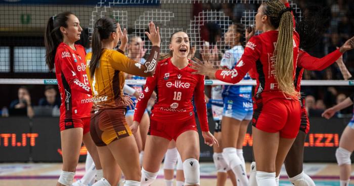 Coach Barbolini ha confermato il 6+1 visto contro Conegliano, ma nel corso della gara ha mescolato le carte con scelte efficaci: Seki è subentrata a Boldini in regia a fine secondo set e ha dato ritmo alla squadra, mentre Torcolacci e Battista hanno sostituito Eckl e Gennari, portando energia e solidità.