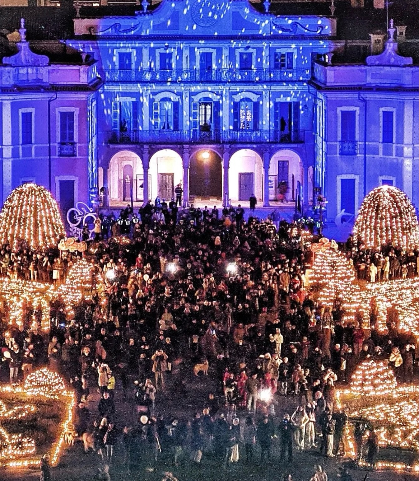 Prima dell’accensione, il pubblico ha assistito con il naso all’insù allo spettacolo teatrale messo in scena dalla compagnia Splendor del Vero insieme all’illusionista Walter Maffei, che ha scaldato l’attesa con giochi di luci, musica e atmosfere sospese. Poi il countdown, guidato dal sindaco Davide Galimberti e dal vicesindaco Ivana Perusin, e infine l’esplosione luminosa che ha acceso ufficialmente il Natale in città.
