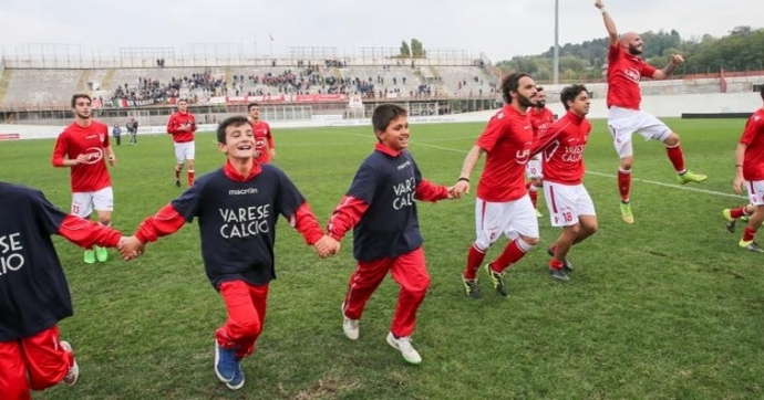 GOL DEL VARESE. Ancora Giovio: un gol stupendo, servito dalla sinistra dal Poeta Cavalcante, tira un missile stupendo nell’angolino destro. Gol pazzesco, simile a quello contro la Sestese.